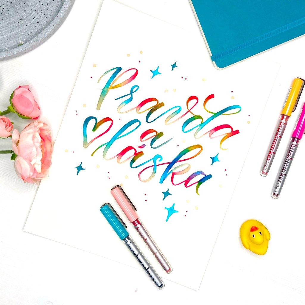 Na kurzu Psaní je hraní vás naučím základy moderní kaligrafie a práci s brush penem – speciálním fixem se štětcovým hrotem. Krok za krokem vás provedu základními tahy, tvorbou písmen a poradím vám, jaké pomůcky a materiály jsou nejlepší pro začátečníky. Společně objevíme kouzlo moderní kaligrafie!