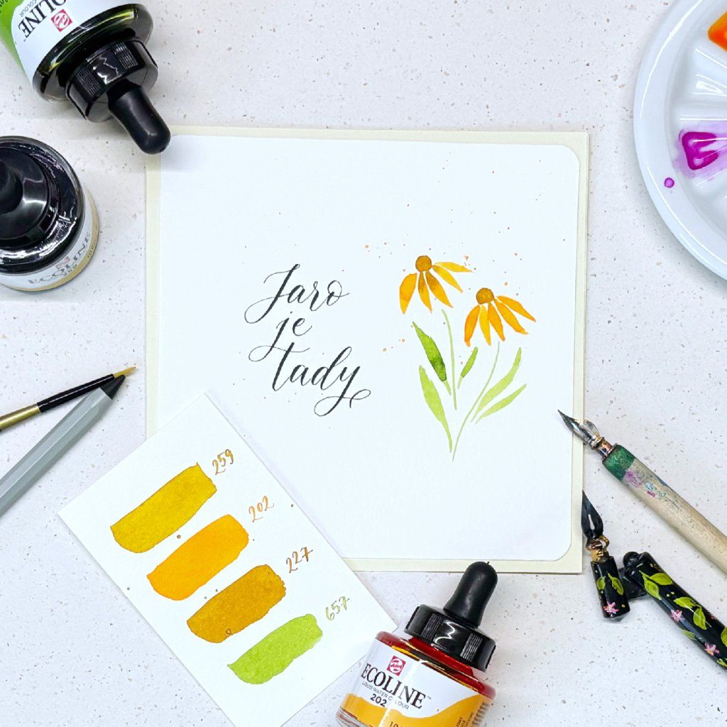 propojení kaligrafie a akvarelu do přání nebo plakátku
