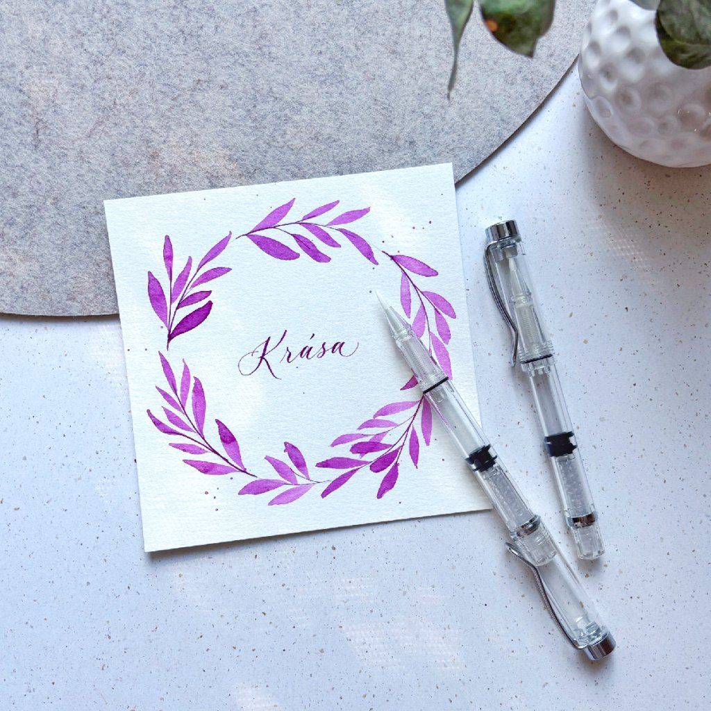 Namáčení pera do inkoustu a lehkost tahu štětcem s akvarelem – přesně tohle všechno nás čeká na tomto speciálním kurzu. Spojím dvě techniky, které miluju: moderní kaligrafii klasickým perem s inkoustem a psaní i malování akvarelovými barvami.