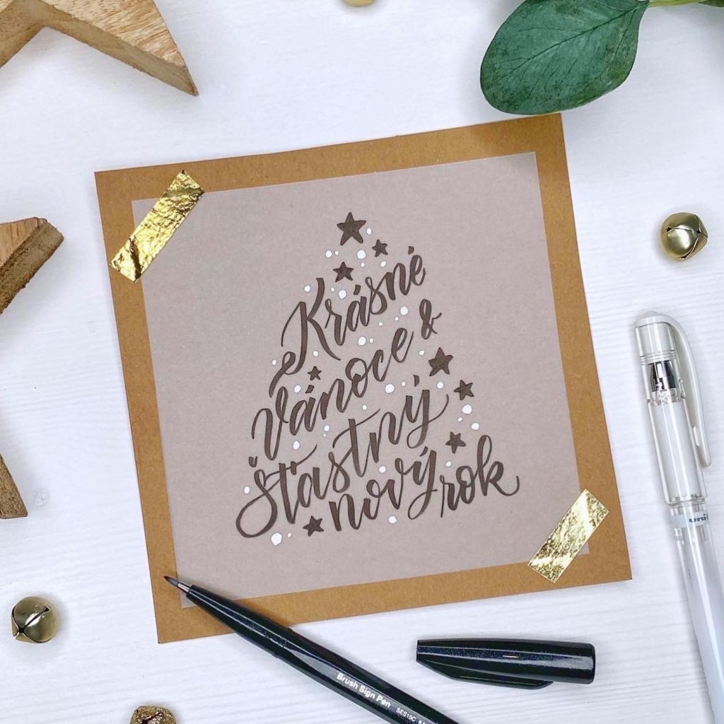 Přání, jmenovky a kouzelná vánoční atmosféra v kaligrafickém stylu