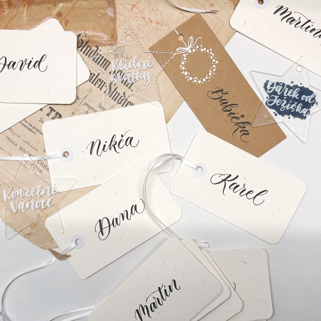 Přání, jmenovky a kouzelná vánoční atmosféra v kaligrafickém stylu